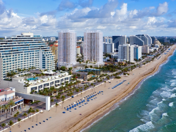 Fort Lauderdale’s most thoughtfully designed new oceanfront condominium brings contemporary architecture and exceptionally spacious residences together with a host of indoor and outdoor amenities and 24/7 hospitality-inspired services. Two resort-style pool terraces poised at the fourth floor overlooking the Atlantic Ocean offer fire pits, poolside cabanas, and dining areas, among other delightful features. Just minutes away from this enchanting oasis, Las Olas Boulevard and Downtown Fort Lauderdale await with a vibrant array of shopping, dining, and historic destinations. Tall and Slender, the 300-foot-high East and South Towers both showcase panoramic ocean and city skyline views. Lot size: 2.6-acre property Developer: Kolter Urban
